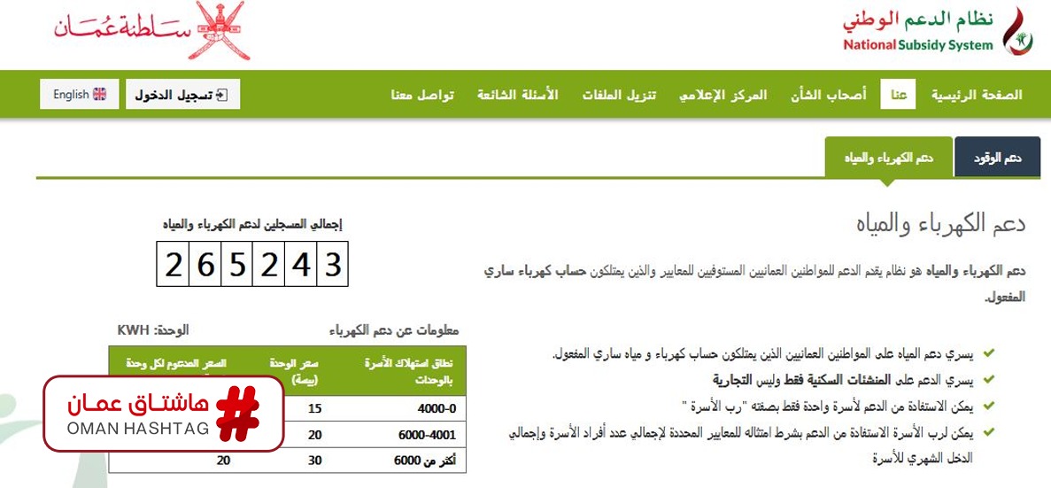يستقبل فريق الدعم الفني الخاص بنظام الدعم الوطني اتصالات المواطنين العمانيين لتسجيل المقترحات والشكاوى حول نظام دعم الكهرباء والماء ونقلها للجهات المعنية التي تعمل على معالجة كل حالة بما يضمن حصول الجميع على مستحقاتهم.